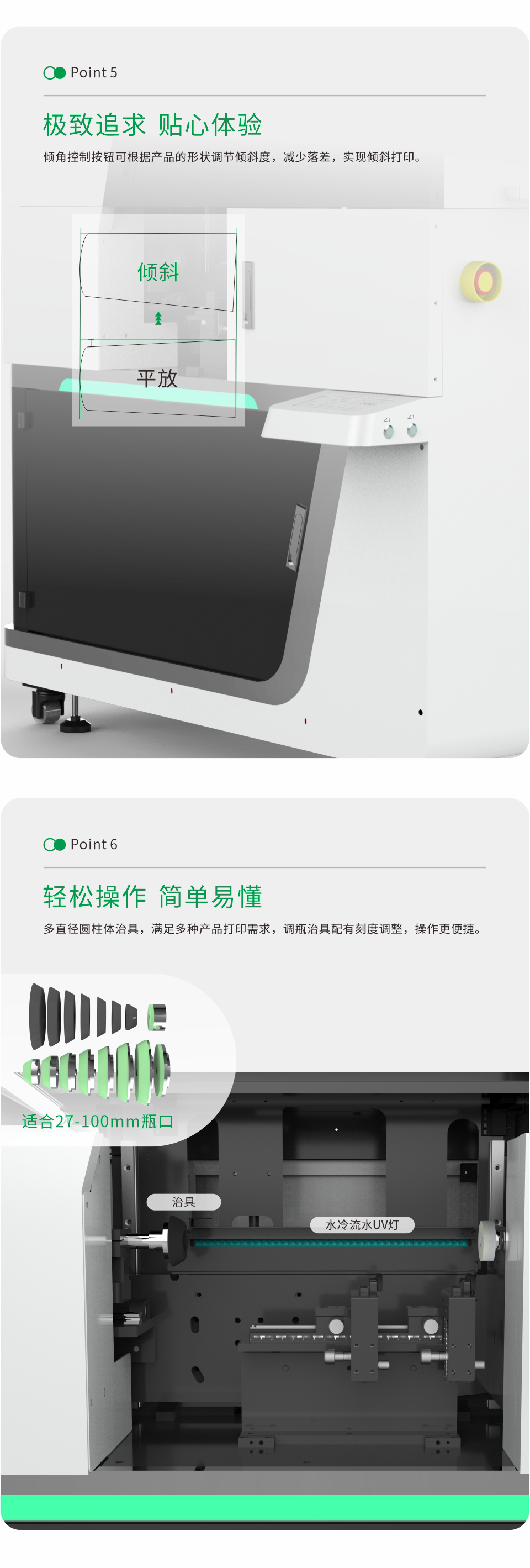 傾角控制按鈕可根據(jù)產(chǎn)品的形狀調(diào)節(jié)傾斜度,減少落差,實現(xiàn)傾斜打印。