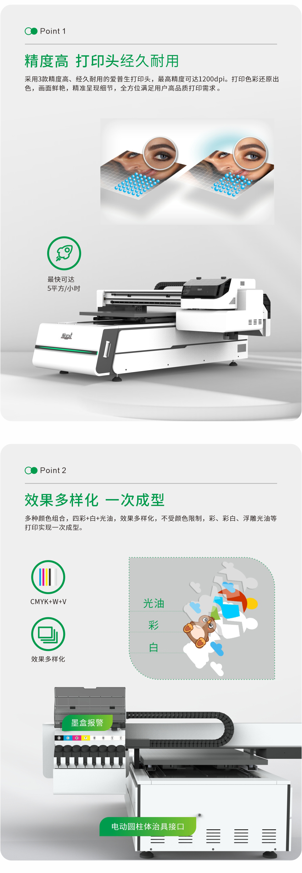 精度最高可達(dá)1200dpi,白彩光油同出,打印畫質(zhì)細(xì)膩。