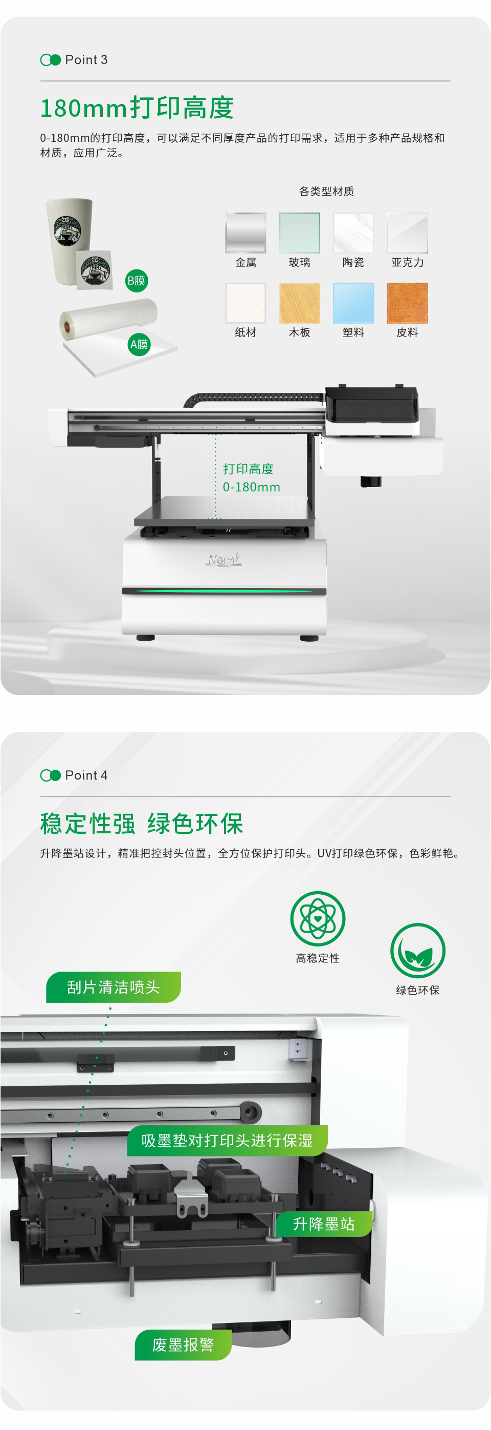 升降墨站設(shè)計(jì),精準(zhǔn)把控封頭位置,全方位保障打印頭。