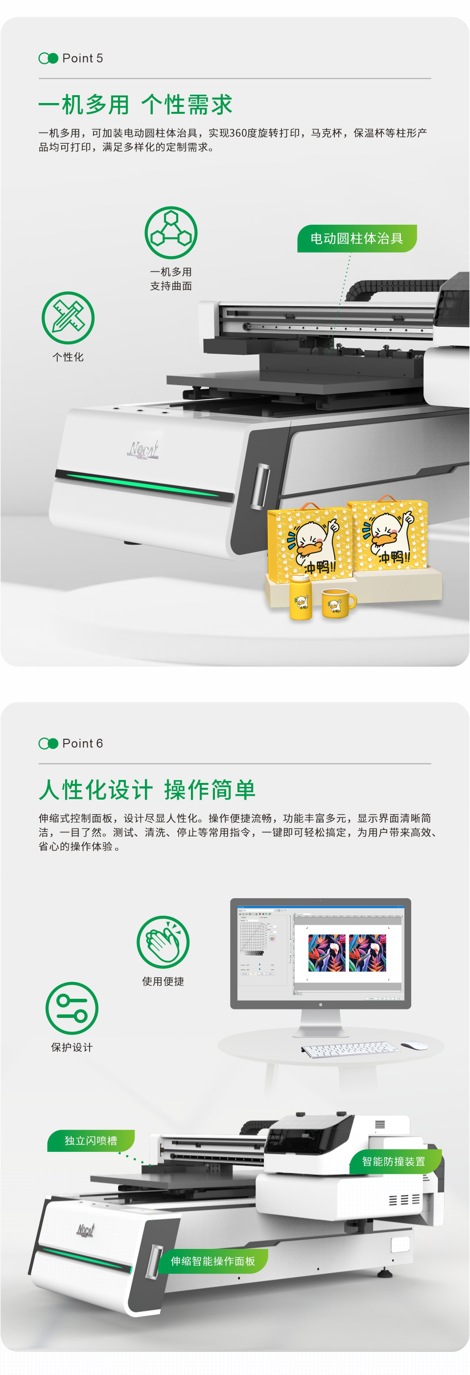 一機(jī)多用,加裝圓柱體可實(shí)現(xiàn)360度旋轉(zhuǎn)打印,如:馬克杯,保溫杯等產(chǎn)品。